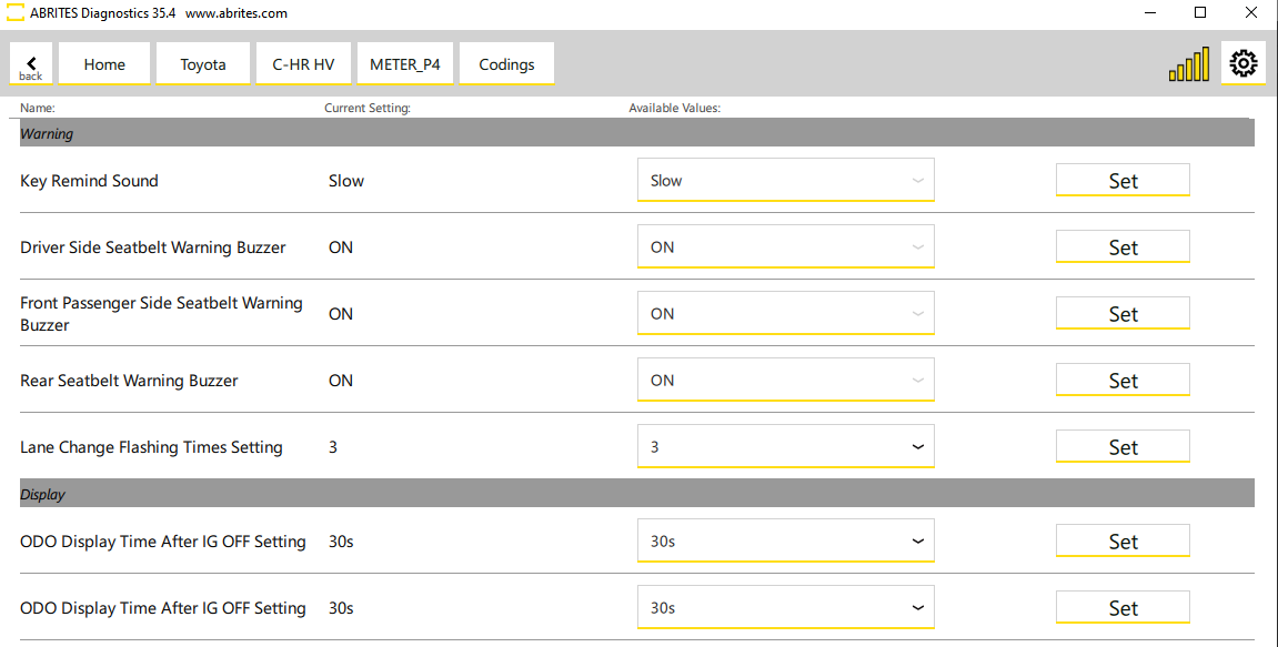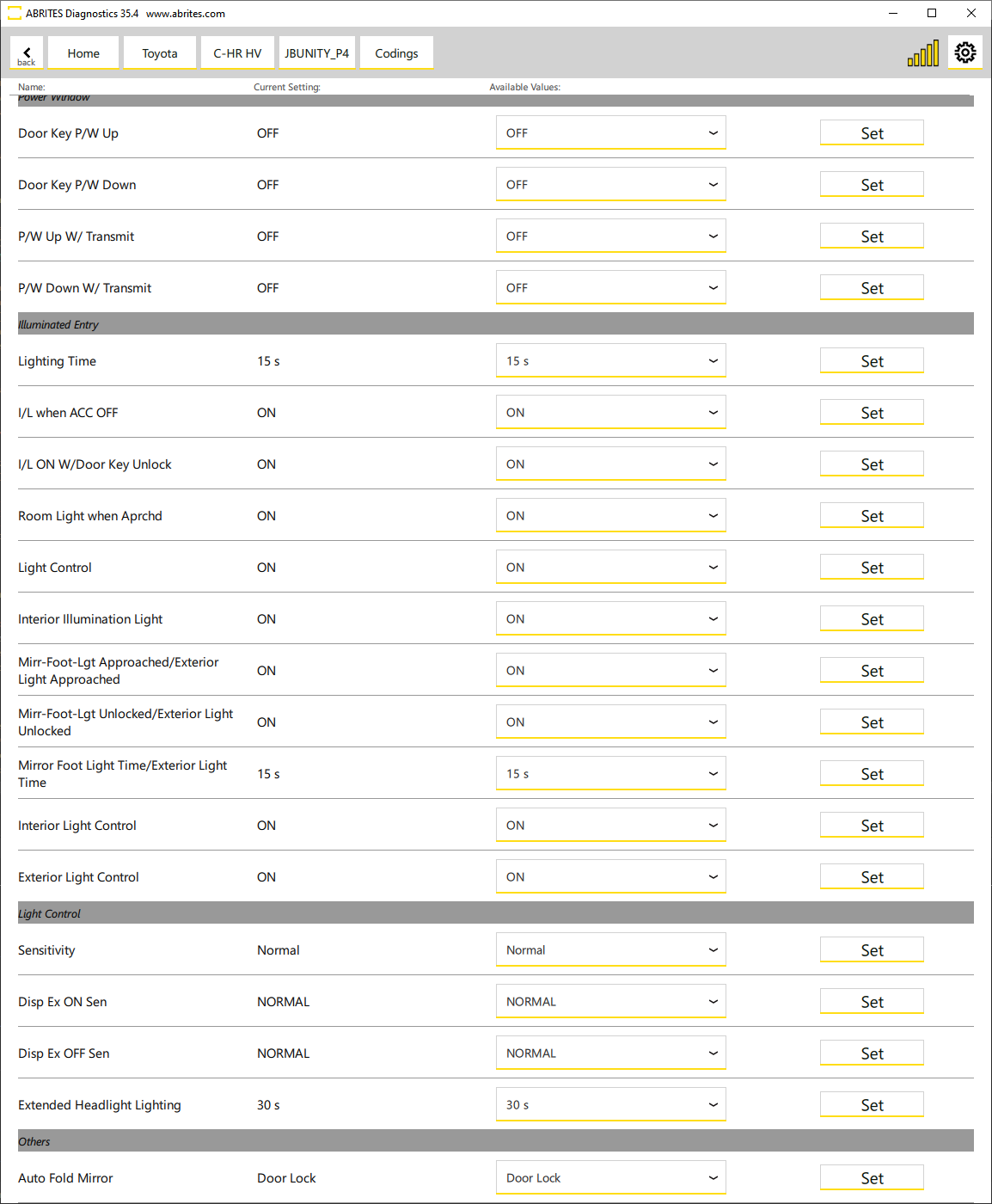 Cela signifie que tous les clients disposant d’un AVDI et d’un abonnement annuel actif peuvent accéder à de nombreuses personnalisations et à diverses options de codage dans le menu principal du logiciel pour les derniers modèles Toyota/Lexus ! Nous avons également étendu la couverture des modules et leurs fonctionnalités pour ces modèles.