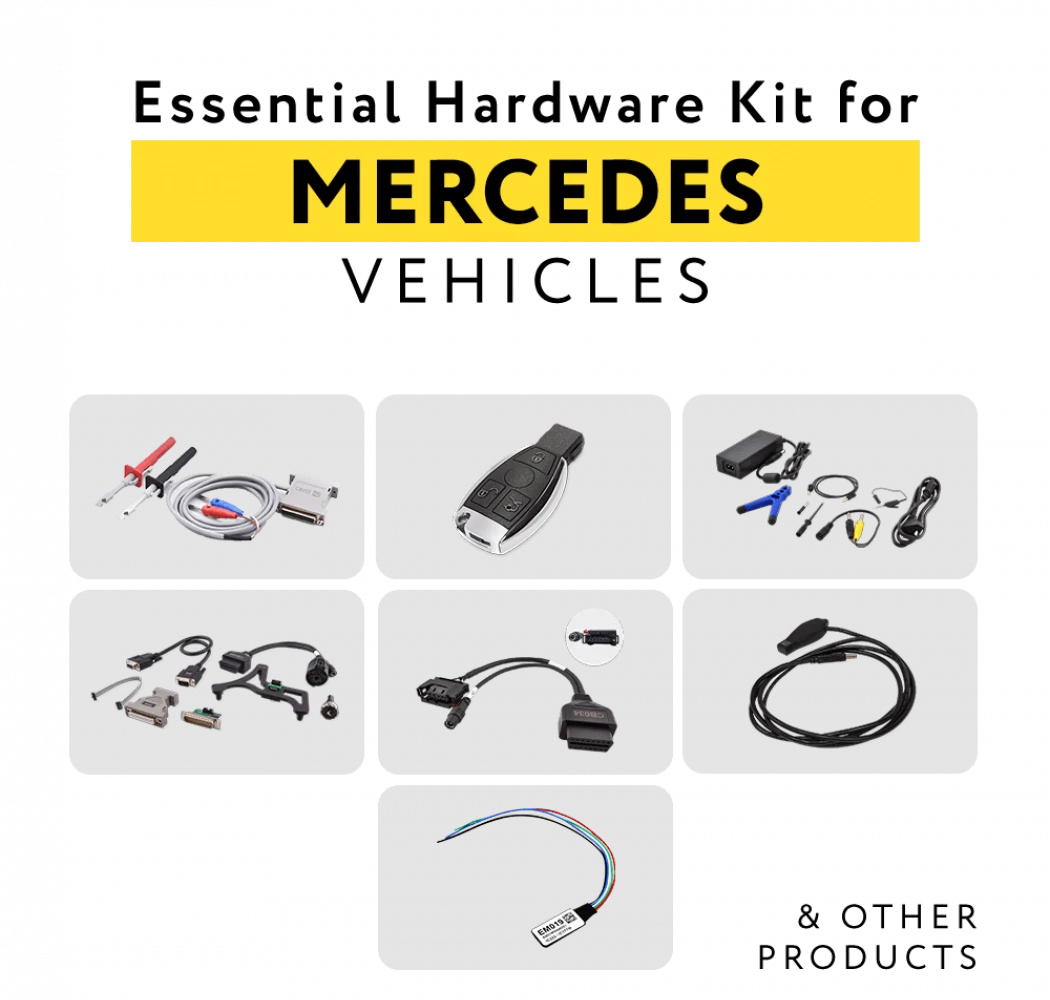 Ce kit contient le matériel essentiel dont vous pourriez avoir besoin lorsque vous travaillez sur des véhicules Mercedes-Benz. (Réf. CB030 ; Réf. CB012 ; Réf. CB026 ; Réf. ZN074 ; Réf. ZN076 ; Réf. ZN086 ; Réf. CB033 ; Réf. CB034 ; ZN092, TA52).